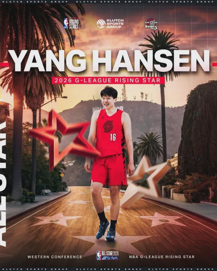 大名鼎鼎的Klutch Sports体育经纪公司以及开拓者官方,均发文祝贺杨瀚森入选2026年NBA全明星新秀赛。